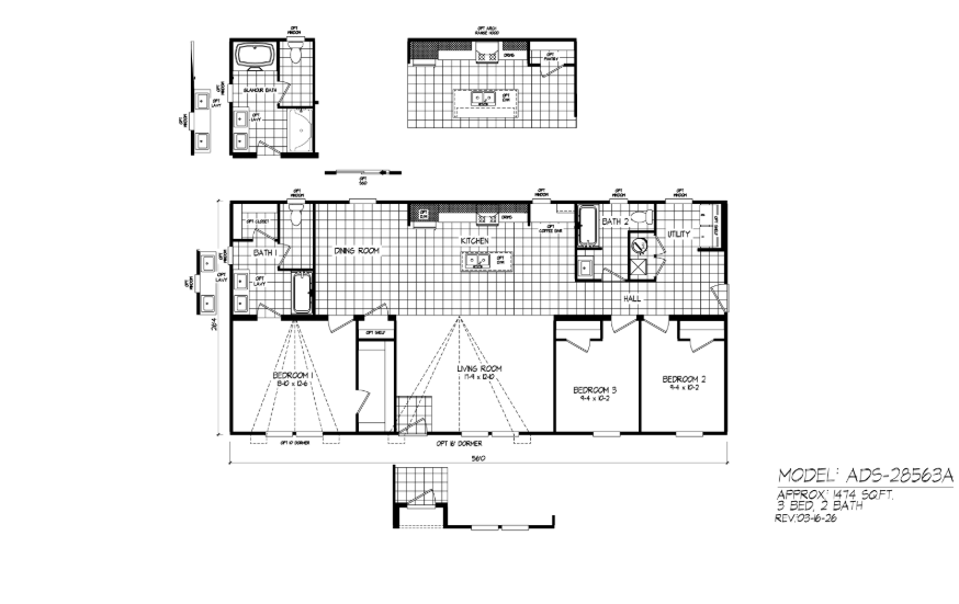 ARIZONA DESERT SKY MODEL# ADS2856-3A 3 BEDROOM 2 BATH 1474 SQ FT