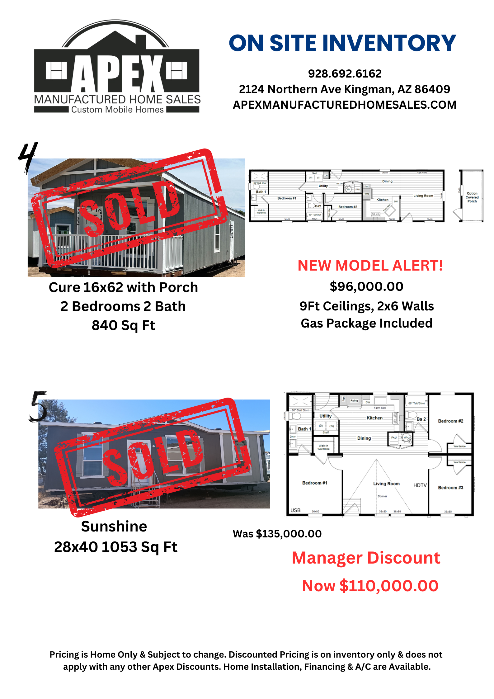 INVENTORY AVAILABLE NOW